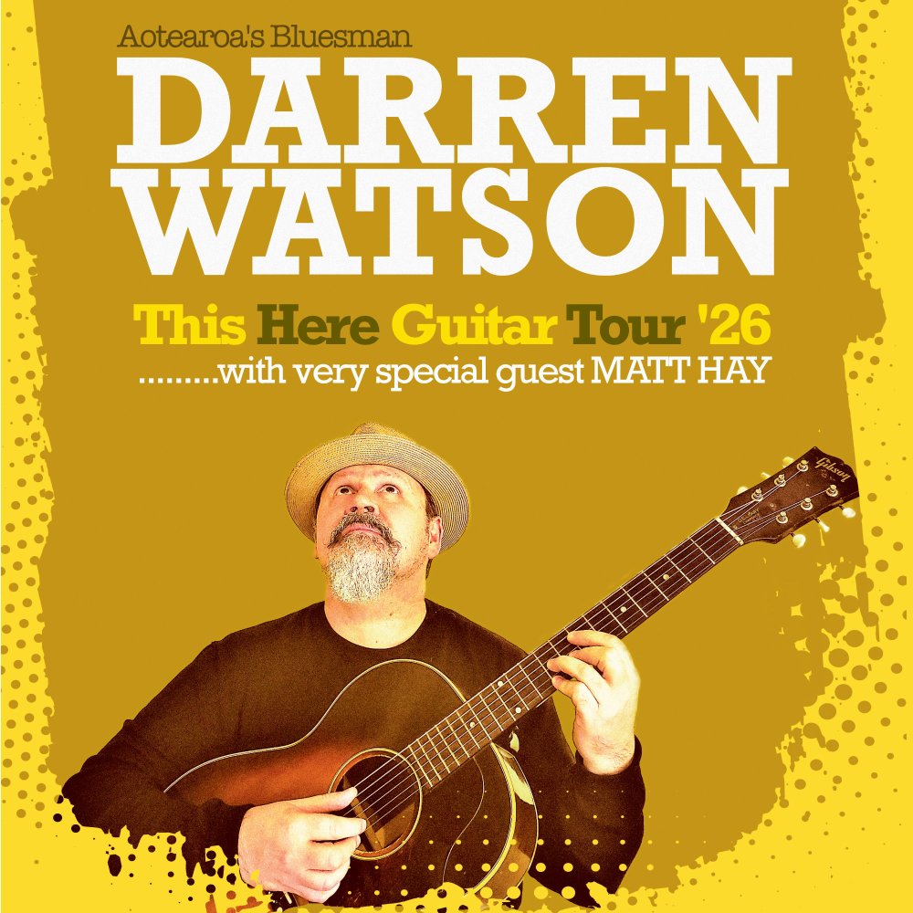 From leading the iconic Chicago Smoke Shop to working alongside greats like Dr. John, Keb Mo, Billy Boy Arnold, and Tony Joe White, Darren Watson has been serving up the finest cuts of New Zealand blues music for decades. His latest release, Darren Watson Sings John Hiatt, recently simmered its way up to #3 on the Official Top 20 Aotearoa Albums Chart. Watson is hitting the road again to deliver his trademark powerful vocals, astonishing yet understated guitar playing, and soulful, "pin-drop" intensity live.