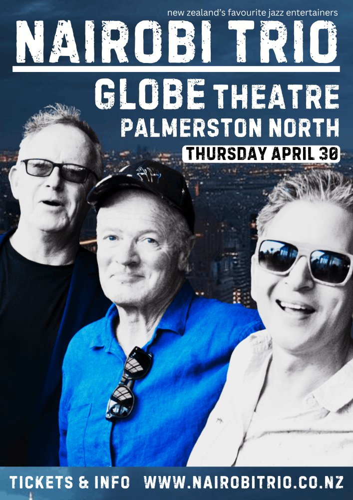 The Nairobi trio are no strangers to the Globe Theatre, having appeared at previous Manawatu Jazz Festivals and on concert tours of New Zealand. Since their inception in 1989 they have earned a reputation as New Zealand's favourite Jazz entertainers; 10 Albums, thousands of gigs, hundreds of festival appearances, dozens of international tours; their unique sound traverses a broad palette which they employ to deliver an effortless blend of reimagined standards and originals all performed in their inimitable way.